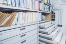 За счет установки передвижных и высоких стационарных стеллажей предприятие смогло разместить всю картотеку