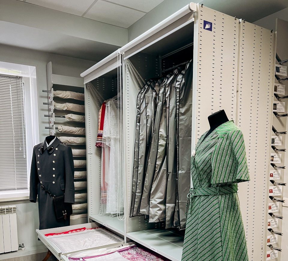 Изготовим передвижные стеллажи для хранения одежды на складе или в фондах музея с доставкой с завода производителя в города Псковской области и России.