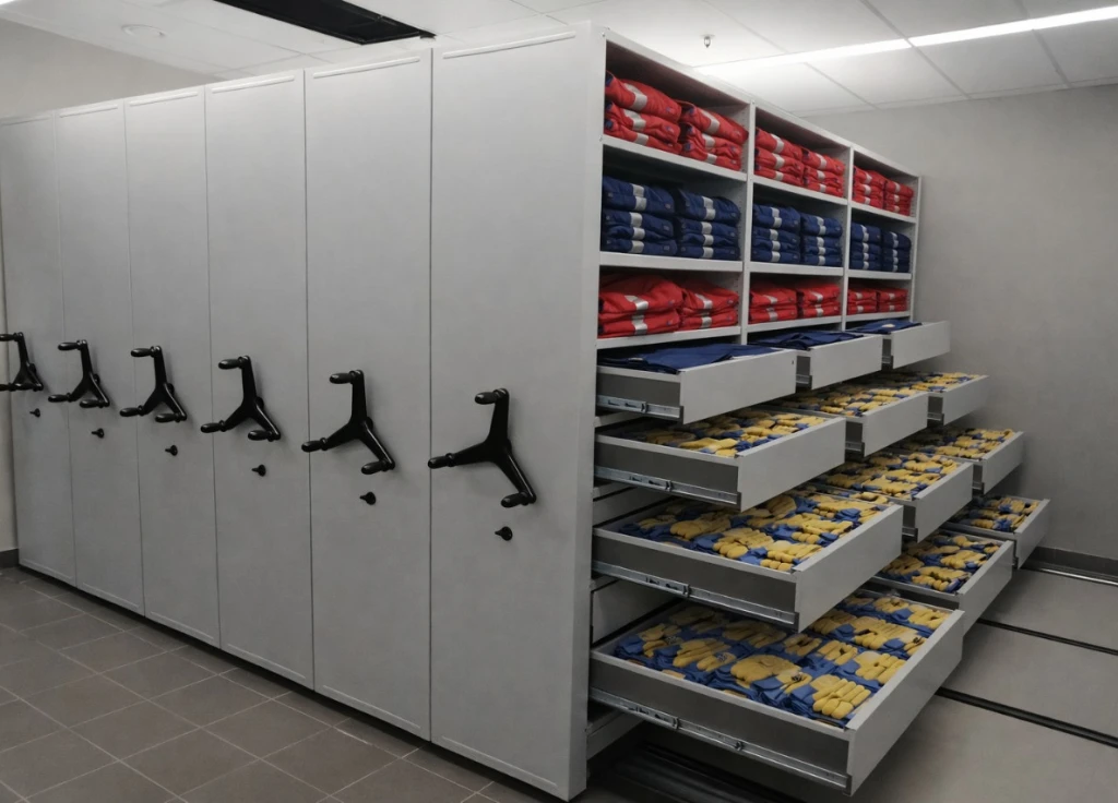 Выдвижные ящики используются для хранения перчаток, касок и противогазов и мелких СИЗ. Удобны для организации адресного доступа к каждому предмету.