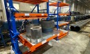Для хранения больших объемов разных, в том числе габаритных грузов, для Заказчика по специальному заказу были изготовлены конструкции увеличенной высоты. Стандартный набор уровней хранения не изменился: три выкатных платформы + верхняя стационарная полка.