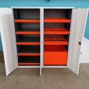Для хранения мелких деталей применяются съёмные выкатные ящики с перегородками, которые позволяют чётко организовать пространство. Каждый метиз, крепёж или элемент размещается в отдельном отсеке, что исключает перемешивание, ускоряет поиск и снижает риск потерь.